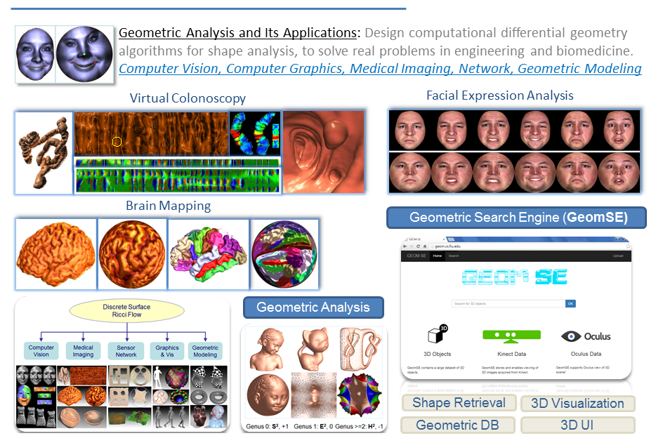 几何分析与学习实验室 Geometry optimization, Analysis and Learning (GoAL) Lab Research focuses on the theories, algorithms and applications of Computational Geometric Analysis (especially Computational Conformal Geometry), as well as interdisciplinary research in Machine Learning. Application areas include 3D Graphics and Vision, Geometric Modeling, Computer-Aided Design, Medical Imaging, Wireless Communication, and Interpretable and Controllable AI. |